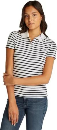 Damen Tjw Slim Essential Dw0dw20160 S/S Poloshirt, White (Ecru/Navy Stripe), XXS EU