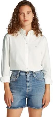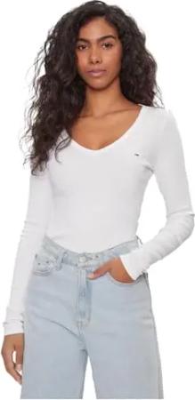 Damen Tjw Slim Essential Rib Ext Dw0dw17383 Langarmhemd, Weiß, XXS EU