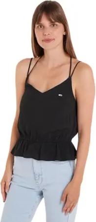Damen Top Essential Strappy Top V-Ausschnitt, Schwarz (Black), S