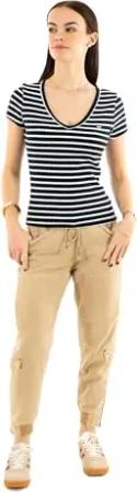 Damen 2er Pack T-Shirts Kurzarm mit V-Ausschnitt, Mehrfarbig (Ecru/Sapphire Red), XS