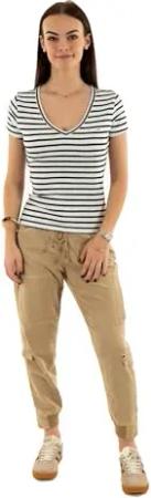 Damen 2er Pack T-Shirts Kurzarm Essential Rib Slim Fit, Mehrfarbig (Ecru/Sweet Blue), M