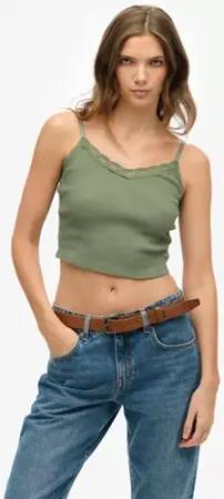 Superdry Damen Kurzes Athletic Essentials Trägertop mit Spitzenbesatz Grün - Größe: 10-12