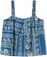 Damen Vintage Strand-Trägertop Indo Blatt Marineblau 36