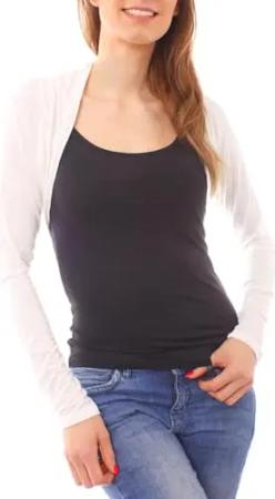 Damen Jersey Bolero - Langarm Schulterjacke - kurzer offener Crop Cardigan 2008 OneSize (34-38) - Creme