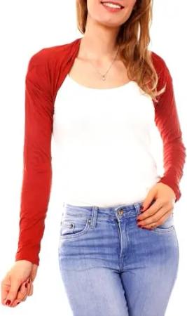 Damen Jersey Bolero - Langarm Schulterjacke - kurzer offener Crop Cardigan OneSize 2008 (34-38) - Terracotta