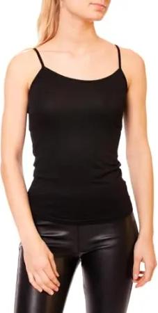 Damen Spaghettiträger Top Viskose Skinny Fit Unterziehshirt 0146 (OneSize - Schwarz)