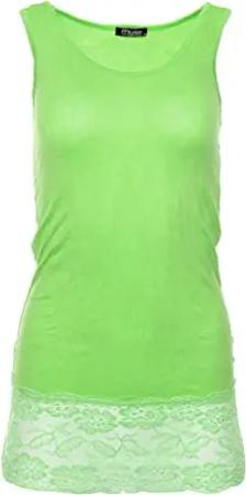 Damen Trägertop mit Spitzensaum - langes Unterziehshirt Skinny Fit 0518 (Apfelgrün S/M)