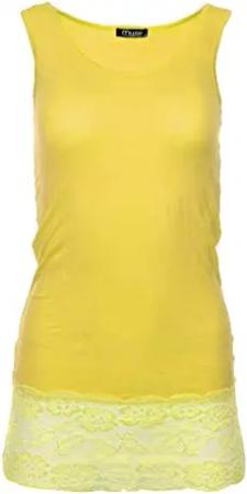 Damen Trägertop mit Spitzensaum - langes Unterziehshirt Skinny Fit 0518 (Gelb S/M)