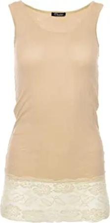 Damen Trägertop mit Spitzensaum - langes Unterziehshirt Skinny Fit 0518 (Sand S/M)