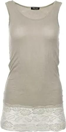 Damen Trägertop mit Spitzensaum - langes Unterziehshirt Skinny Fit 0518 (Taupe S/M)