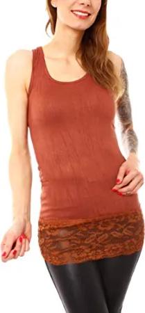 Damen Trägertop mit Spitzensaum - langes Unterziehshirt Skinny Fit 0518 (Terracotta S/M)