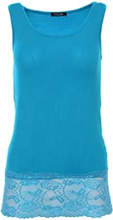 Damen Trägertop mit Spitzensaum - langes Unterziehshirt Skinny Fit 0518 (Türkis S/M)