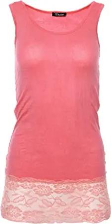 Damen Trägertop mit Spitzensaum - langes Unterziehshirt Skinny Fit 0518(Koralle S/M)