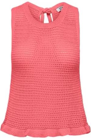 Damen Grob Gestricktes Rüschen Top Ärmelloses Struktur Oberteil Gehäkelt mit Schnürung JDYTIKKA, Farben:Rosa-2, Größe:L