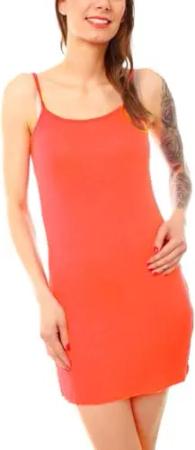 Damen Basic Spaghettiträger Longtop - kurzes Unterkleid - langes Tank Top Kleid - Baumwoll Nachtkleid 8009 - Koralle
