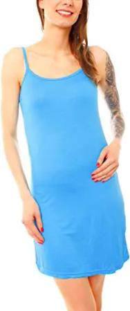 Damen Basic Spaghettiträger Longtop - kurzes Unterkleid - langes Tank Top Kleid - Baumwoll Nachtkleid 8009 - Türkis