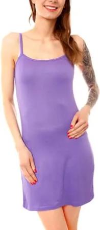 Damen Basic Spaghettiträger Longtop - kurzes Unterkleid - langes Tank Top Kleid - Baumwoll Nachtkleid 8009 - Violett