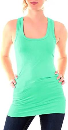 Damen Basic Trägertop - ärmelloses Longtop Extra Lang - Skinny Fit 9002 - OneSize (Mint)