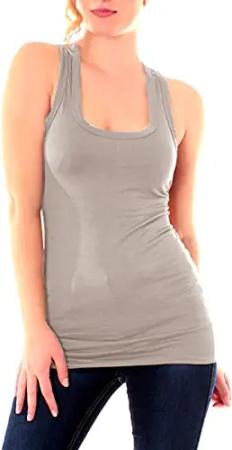 Damen Basic Tanktop - Fitness Top - Ringerrücken Sport - Shirt Skinny Fit Trägertop Unterhemd 8002 - Taupe