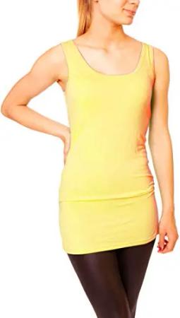 Damen Basic Trägertop - ärmelloses Longtop Extra Lang - Skinny Fit 9002 - OneSize (Blassgelb)