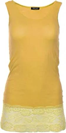 Damen Trägertop mit Spitzensaum - langes Unterziehshirt Skinny Fit 0518 (Maisgelb S/M)