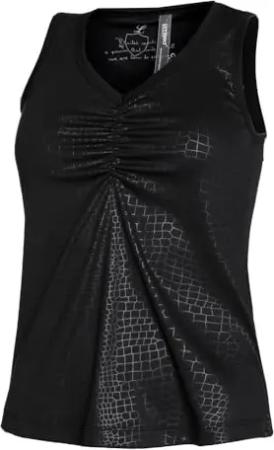 Odile | Top - Leichtes, sanftes, kühlendes Materialmix Oberteil mit Raffungen und Knopf-Verschluss (L, Black)