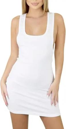 Damen Longshirt Kleid ärmellos mit Taschen, Figurbetonter Schnitt, Rundhals Weiß M