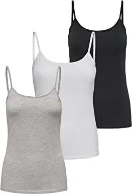 Damen 3er-Pack Basic Spaghetti-Träger Top Oberteil schmale Träger Shirt, Größe:XL, Farbe:3er Mix5