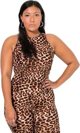 Damen große Größen Übergrößen Plus Size Crop-Top, Slim Shape, Leo haselnuss 46+ 836345325-46+