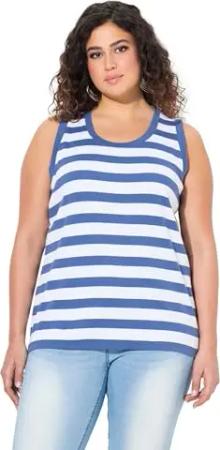 Damen große Größen Übergrößen Plus Size Top, Ringel, Rippjersey, Rundhals, ärmellos atlantikblau 58+ 838098722-58+