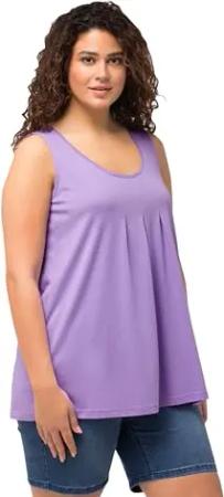 Damen, große Größen, Top, Zierfalten, A-Linie, Rundhals, ärmellos, Modal