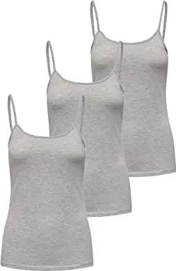 Damen 3er-Pack Basic Spaghetti-Träger Top Oberteil schmale Träger Shirt, Größe:XL, Farbe:3er Grau