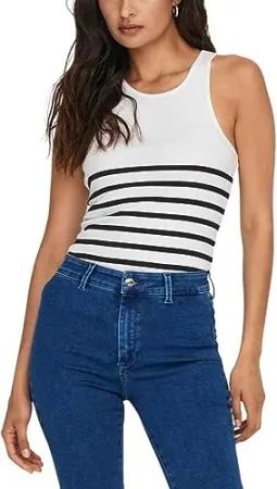 Damen Onlkenya Rib Stripe Tank Top Cs JRS, Bright White/Stripes:Black, S