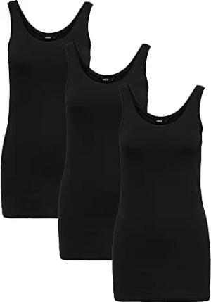 Tank Top Damen Baumwolle Stretch Slim Fit Onllive LUV 4er Pack Set Basic Shirt Rundhals Trägershirt Ärmellos Oberteile Einfarbig, Größe:XL, Farbe:Pack 3