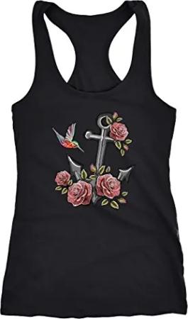 Damen Tank-Top Anker Rosen Patch Tropical Anchor Stick-Optik Racerback schwarz XL