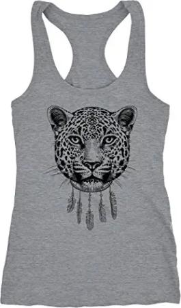Damen Tank-Top Boho Leopard Racerback grau L