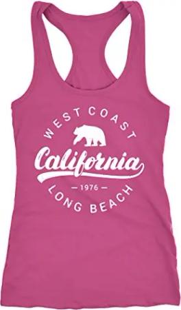 Damen Tank-Top California Retro Kalifornien Bär Summer Racerback Slim Fit tailliert Baumwolle weiß L