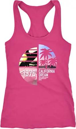Damen Tank-Top Miami Beach Sunset Palmen Racerback Trägershirt weiß M