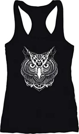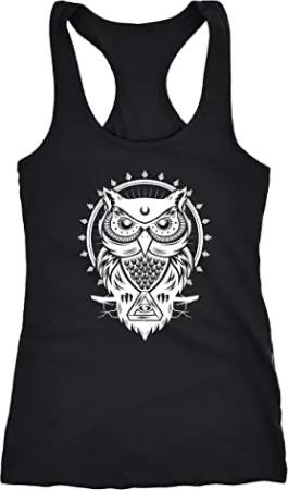 Damen Tank Top Tanktop Eule Mandala Owl Racerback Trägershirt Trägertop schwarz XS