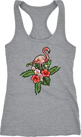Damen Tank-Top Flamingo Tropical Palmblätter Sommer Stick-Patch-Optik Racerback grau XL