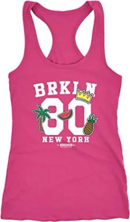Damen Tank-Top Patches Aufnäher Look Ananas Wassermelone Palme Krone Brooklyn Racerback alt-rosa XXL