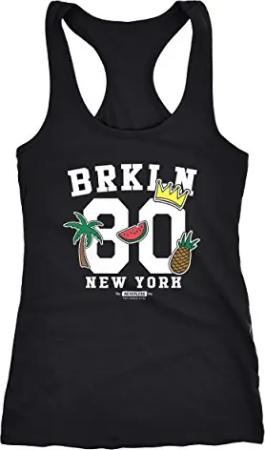 Damen Tank-Top Patches Aufnäher Look Ananas Wassermelone Palme Krone Brooklyn Racerback schwarz XL