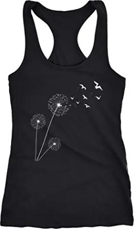 Damen Tank-Top Pusteblume Vögel Dandelion Birds Racerback schwarz M