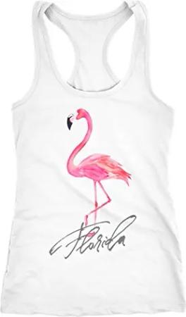 Damen Tank-Top Shirt Flamingo Seepferdchen Florida Watercolor Weiss - Flamingo M