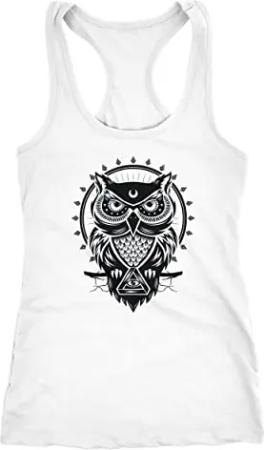 Damen Tank Top Tanktop Eule Mandala Owl Racerback Trägershirt Trägertop weiß XL
