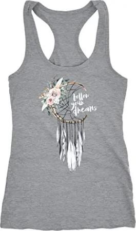 Damen Tank-Top Traumfänger Dreamcatcher Follow Your Dreams Spruch Blumen Federn Spruch Boho Racerback grau M