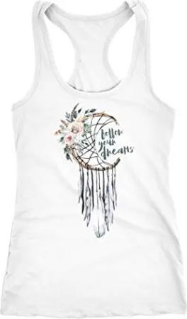 Damen Tank-Top Traumfänger Dreamcatcher Follow Your Dreams Spruch Blumen Federn Spruch Boho Racerback weiß XXL
