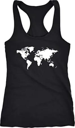Damen Tank Top Weltkarte World Map Racerback Tanktop schwarz XL