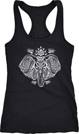 Damen Tank-Top Zentangle Elefant Boho Bohamian Atzec Elephant schwarz M