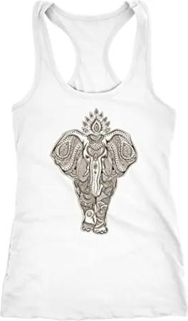 Damen Tank-Top Zentangle Elefant Mandala Boho Bohemain Elephant Racerback weiß XXL